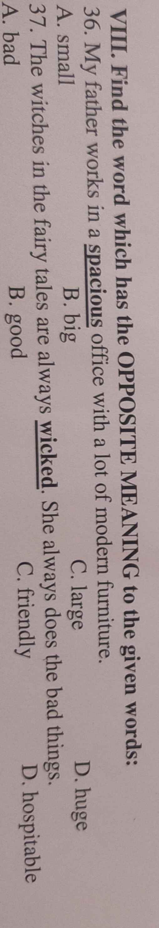 => oppossite của nó là A. small